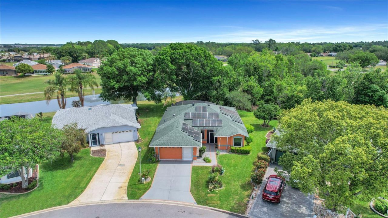 Welcome to this beautiful 3-bedroom, 2-bath pond view pool home located in the desirable Pennbrooke Fairways community. Step inside to discover freshly painted walls, brand-new carpet, and neutral tile flooring, creating a bright and inviting atmosphere. The spacious kitchen offers plenty of room to cook and gather, featuring white cabinetry, a convenient breakfast bar, and a closet pantry for added storage. The primary suite is a relaxing retreat with tile flooring, a walk-in closet, and an ensuite bathroom complete with a jetted tub and separate walk-in shower. The second bedroom is generously sized and filled with natural light, while the third bedroom offers flexibility as a guest room, office, or hobby space. An indoor laundry room with a utility sink provides additional storage and functionality. The roof and HVAC were replaced in 2017, while in 2019 the water heater was replaced and solar panels were installed. Also, the home has newer glass sliding doors to the lanai. The low monthly HOA fee of $265 includes lawn care, high-speed internet, cable, and access to an impressive array of amenities. Pennbrooke Fairways is a gated golf community featuring 27 holes of golf, a pro shop, and an on-site restaurant. Residents also enjoy two recreation centers, swimming pools, a fitness center, and a variety of outdoor activities including shuffleboard, pickleball, tennis, softball, horseshoes, water volleyball, and cornhole. Conveniently located near shopping and dining, and just 6 miles east of The Villages' Brownwood Paddock Square, this home truly has it all.